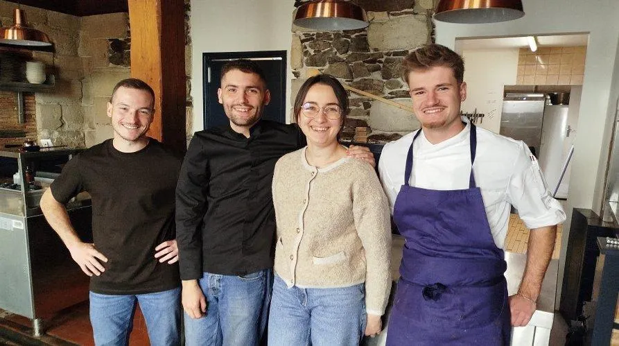 De gauche à droite : Killian Bondu (en salle), Simon Barrault, Mathilde Hersard et Sam Lemée (en cuisine). La nouvelle équipe du nouveau restaurant bistronomique Sillage à Chalonnes-sur-Loire. © Ouest-France