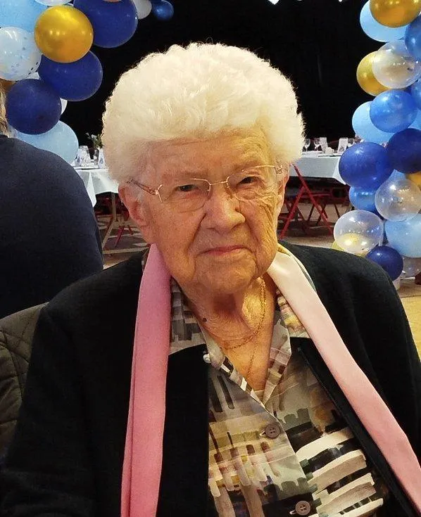Avec 99 ans et 7 mois, Mathilde Jollivet était la doyenne des 204 invités du repas des aînés organisé par le centre communal d’action sociale. © Ouest-France