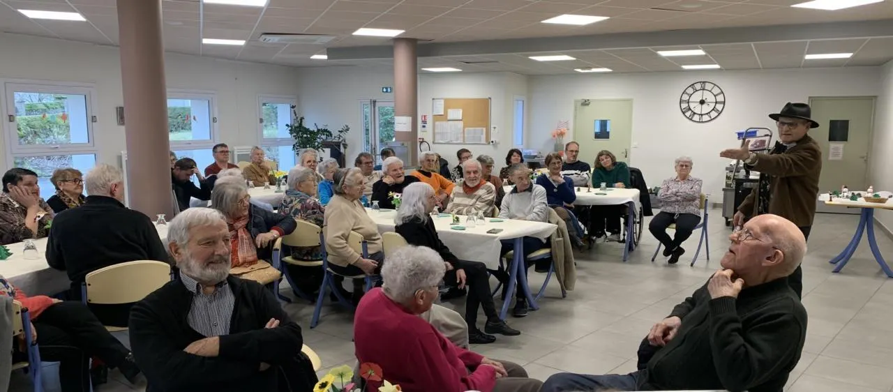 Trente-quatre bénéficiaires et résidents de Soleil de Loire, onze bénévoles et trois salariés ont formé une belle assistance qui a applaudi chaleureusement Jean-Pierre Harpin ayant conté des rimiaux d’Anjou. Des souvenirs pour certains, une découverte pour d’autres.