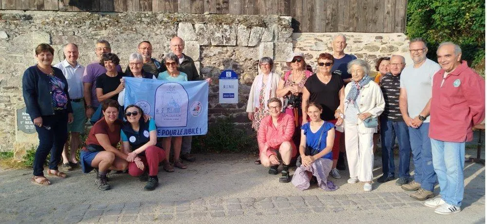 Une nouvelle borne a été inaugurée sur les quais Gambetta à Chalonnes, sur l’itinéraire de la Via Ligéria à 2 022 km de Rome, en présence des initiateurs de cette nouvelle voie : des pèlerins, des élus, des hébergeurs de pèlerins et des représentants de la halte fluviale des Chalandoux. © Ouest-France