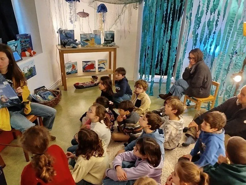 En janvier et février, plus de 400 enfants de 4 à 7 ans participeront aux activités : lectures en classe, ateliers et spectacle pour enfants. Quatre séances scolaires se déroulent à la médiathèque, dans une magnifique salle au décor océanique et aménagée d’un couloir sonore avec des chants de baleine.