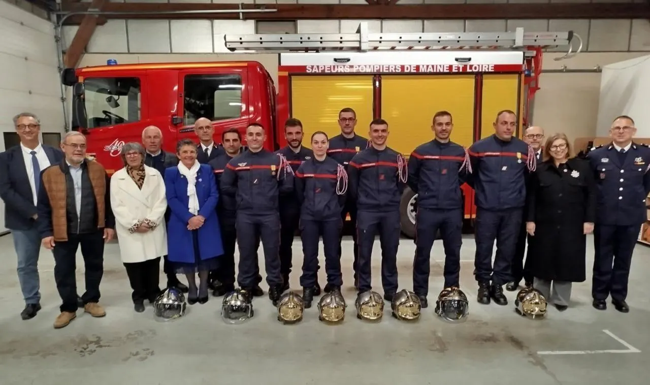 Élus et pompiers promus au centre de secours de Chalonnes-sur-Loire. © CO