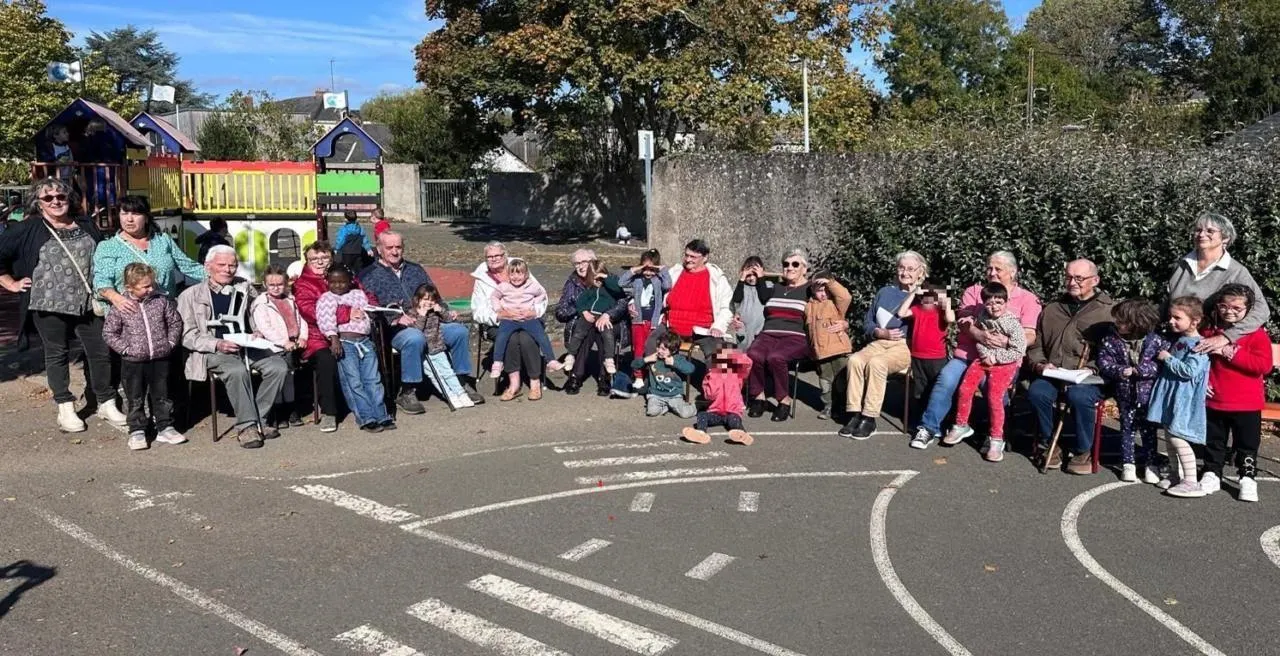 Mardi 14 octobre, dix résidents de la résidence autonomie Soleil de Loire ont répondu à l’invitation du service périscolaire de l’école Petit Prince à partager le repas du midi avec les enfants. Ce projet était porté par deux animatrices du périscolaire : Nathalie et Laurence. Les résidents y ont célébré le départ à la retraite de Laurence, salariée du service périscolaire depuis 1996. Autour d’un repas, les échanges ont été nombreux et souvent empreints d’humour. Les enfants, interrogés sur l’âge des résidents, ont estimé celui-ci entre 5 et 8 ans — une logique implacable, puisque cela représente « le double de leur âge » ! L’après-midi s’est poursuivie dans la cour, où tous ont chanté sur l’air des « Crocrodiles ».