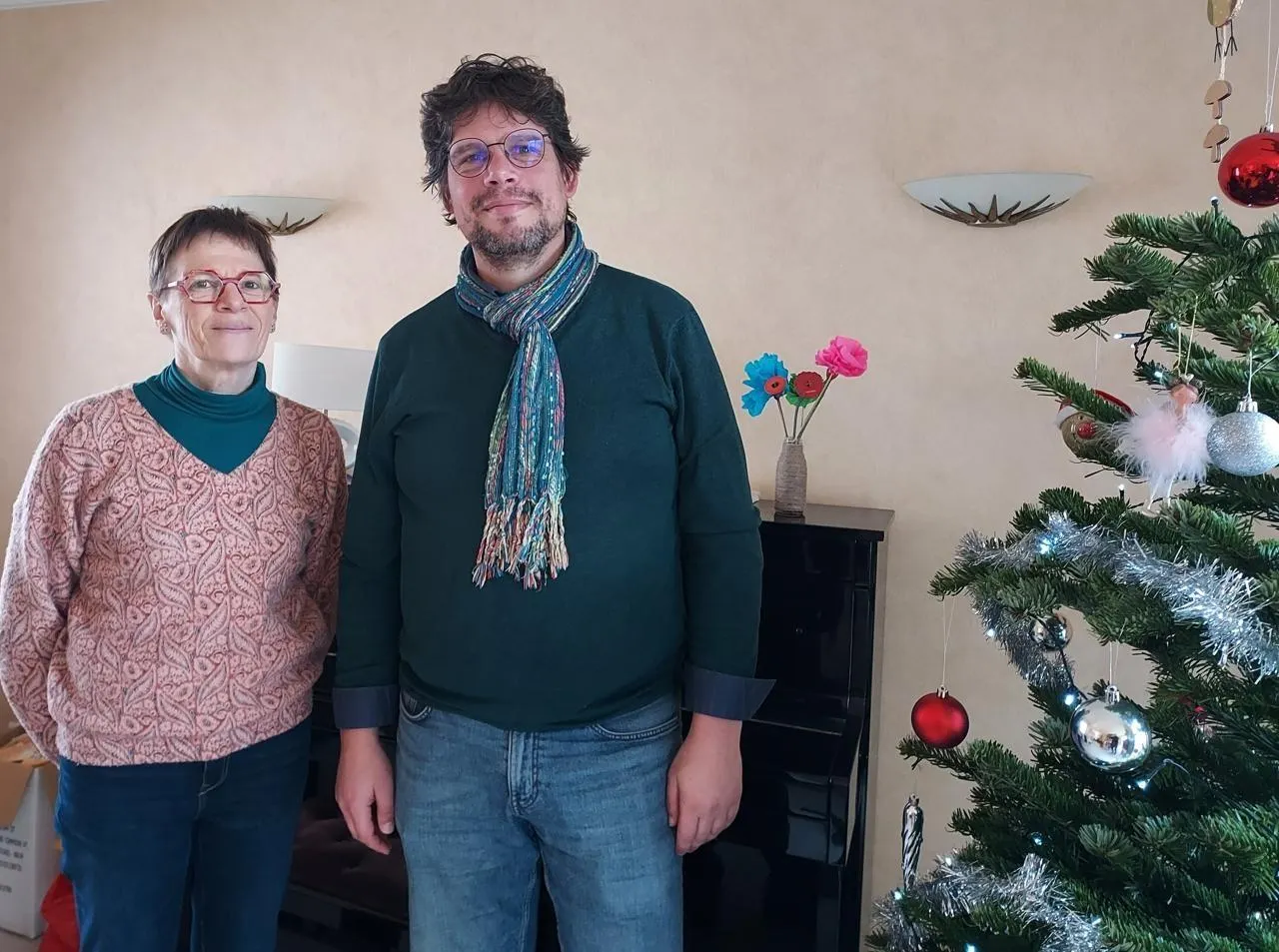 Annie Prono, retraitée de la fonction publique en milieu hospitalier et Guillaume Pineau, chargé de mission dans l’aménagement numérique du territoire chez Anjou numérique, posent ici lors de la transmission des dossiers de la présidence de l’école de musique du Quartet, à l’issue de l’assemblée générale du 10 décembre dernier. © Ouest-France