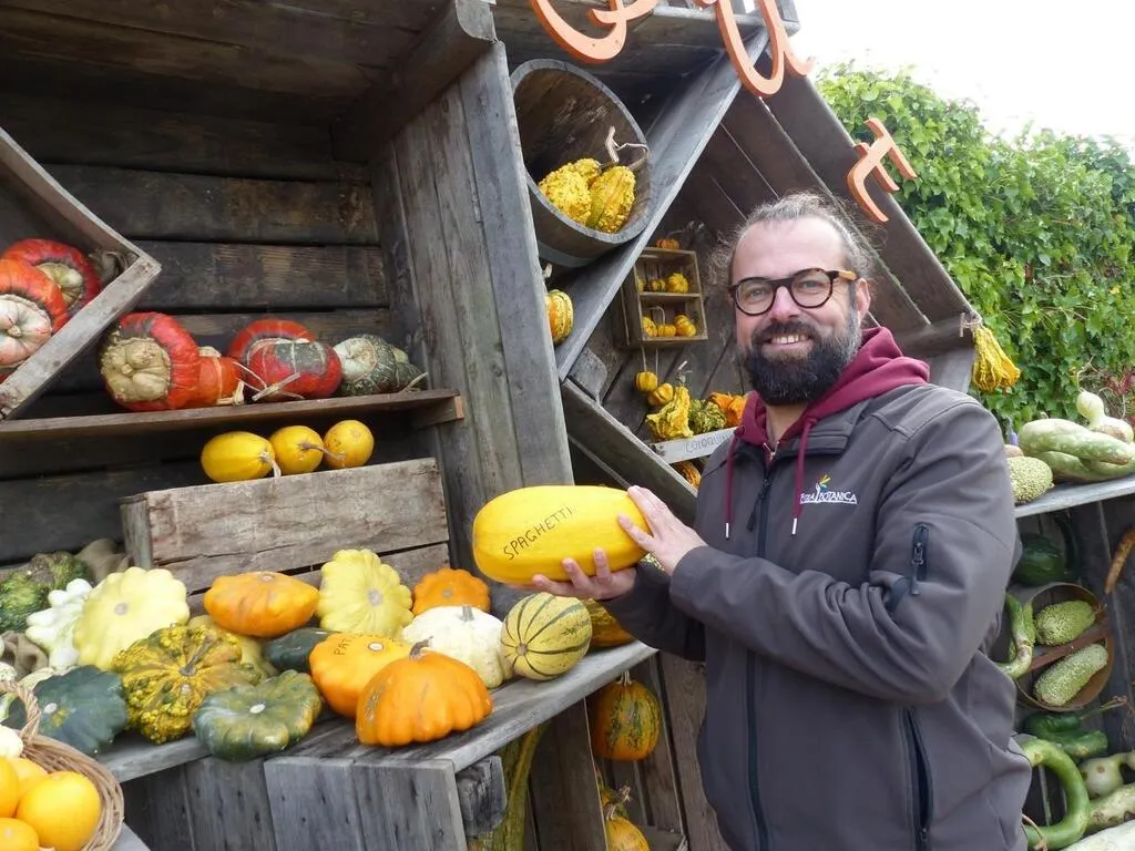 À la « Cucurbithèque », au parc Terra Botanica à Angers (Maine-et-Loire), Boris partage ses connaissances sur les centaines de variétés de courges. © Ouest-France