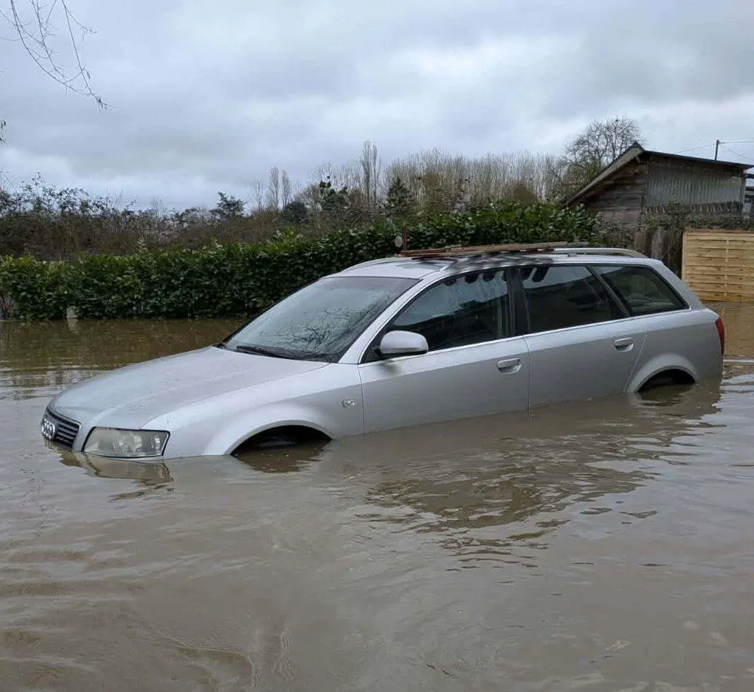 La voiture de famille submergée par les eaux à Cheffes pendant les inondations, témoigne de l’ampleur de la crue qui a touché la commune. © Document remis