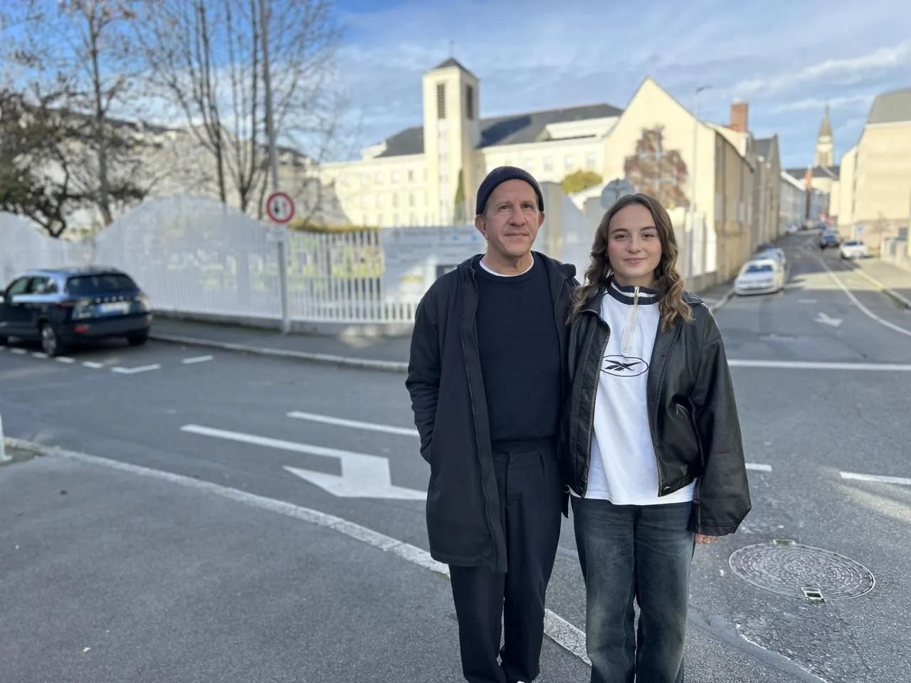 Angers, jeudi 13 novembre 2025. Marcial Di Fonzo Bo, metteur en scène et directeur du Quai, et Inès Quaireau, comédienne, devant l’institution du Bon Pasteur. © CO