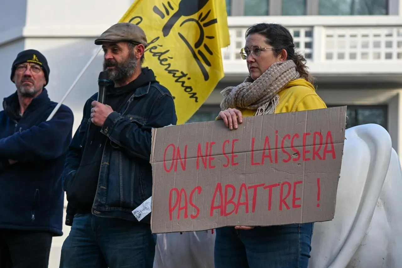 Angers, le 16 décembre 2025. La Confédération paysanne poursuit sa mobilisation contre les abattages préventifs face à la dermatose nodulaire. © CO - Laurent COMBET