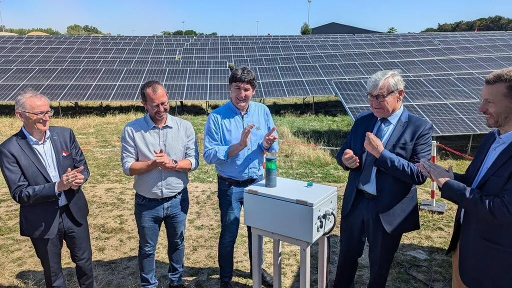 Au moment d’inaugurer officiellement la centrale solaire photovoltaïque (en fonctionnement depuis un mois et demi), l’électricité a jailli ! © Ouest-France