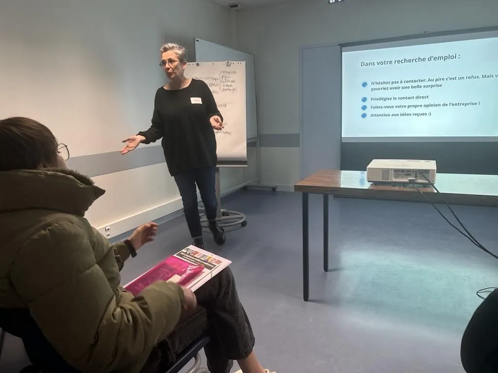 Baugé-en-Anjou, le 12 février 2026. S’il n’y a pas de recette miracle pour décrocher un emploi, il est possible de maximiser ses chances en adoptant des techniques. C’était le propos d’Anne-Lise Robin qui a animé l’un des ateliers du cinquième forum de l’emploi. © CO - Christophe Ricci