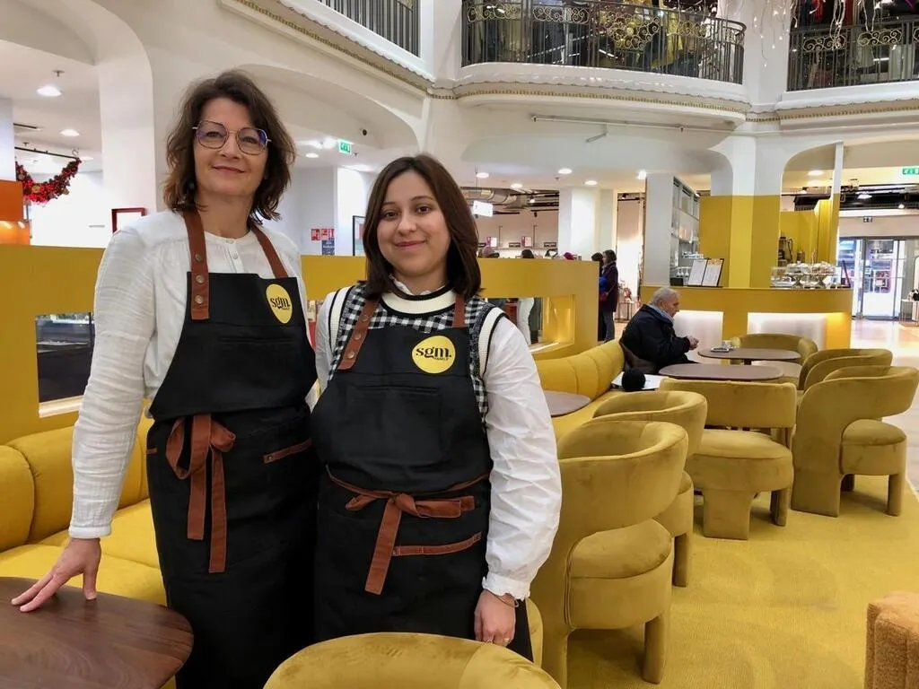Coloré de jaune, SGM Family est ouvert aux jours et heures des Galeries Lafayette. Au menu : thé, café, verre de vin et pâtisseries.