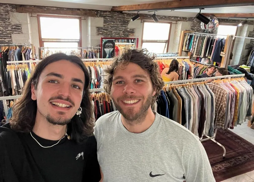 Angers, rue Gâte-Argent, le 11 mai 2024. Jules Maillet (à gauche) et Quentin Ménard sont à la tête de la friperie QAZ. ©  CO