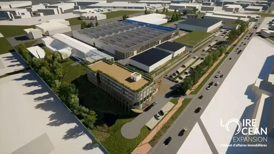 Dans le cadre de sa reconversion, l’ancien site Dorel (au premier plan), au nord-est de Cholet, doit accueillir près de 500 emplois d’ici 2028. © CO - Étienne LIZAMBARD