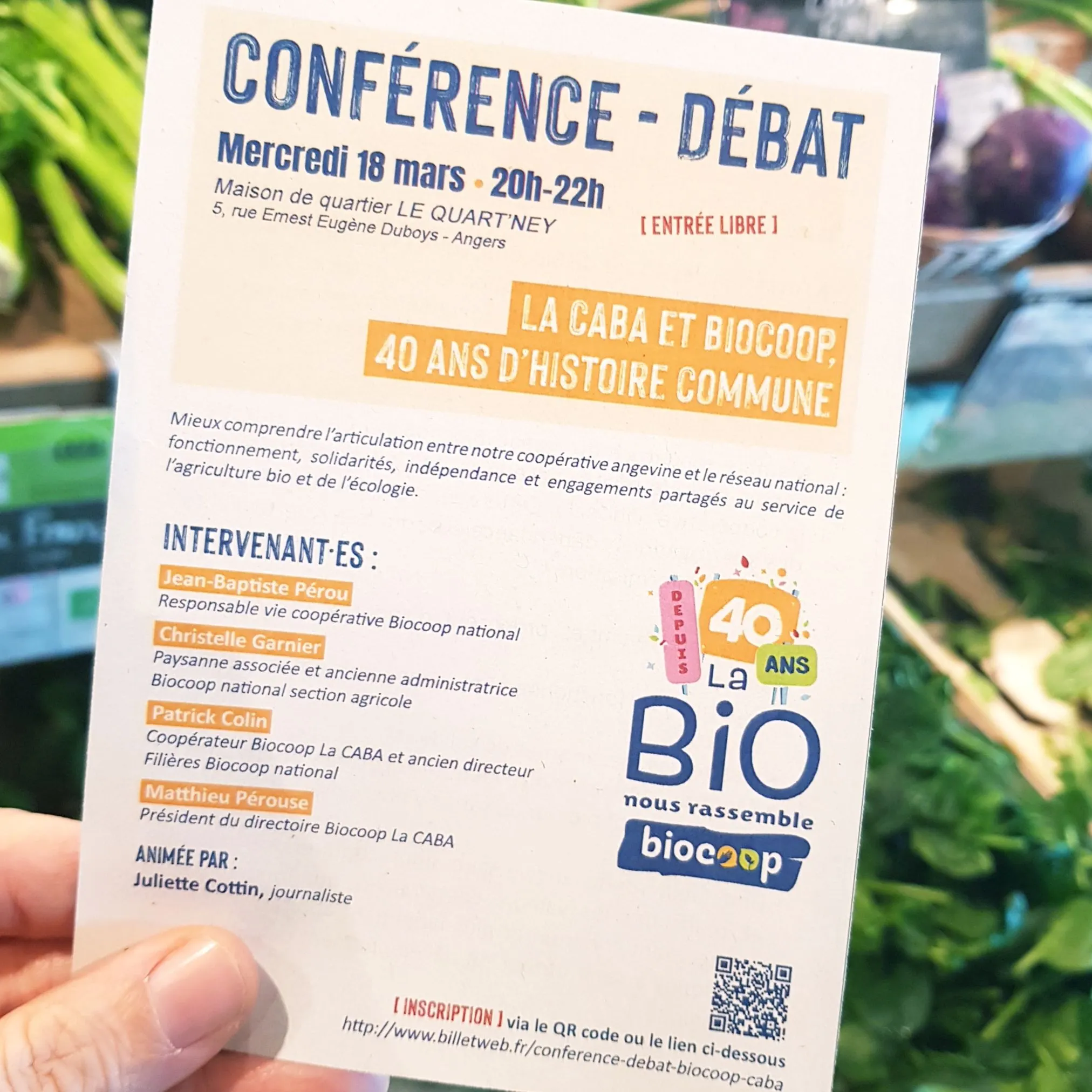 Ne manquez pas cet événement unique ! À Angers, la CABA et Biocoop célèbrent quatre décennies de coopération avec une conférence-débat qui retrace leur parcours commun.