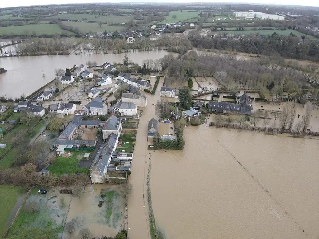 Le quartier de Saint-Aubin-du-Pavoil, à Segré-en-Anjou Bleu, a été fortement impacté par les inondations de cette fin janvier. © Ouest-France / Thierry Huguenin