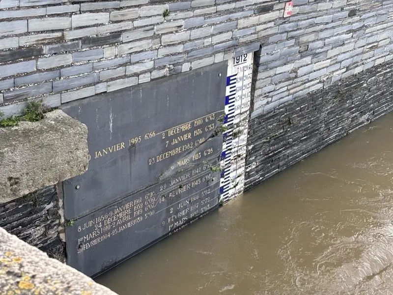 Si la Maine venait à atteindre les 5,85 mètres, à Angers (Maine-et-Loire), il y aurait un double impact : à la fois sur les trams et les voies sur berge, annonce le maire, Christophe Béchu. On se dirige tout droit vers un niveau supérieur à janvier 2004, où la Maine est montée à 5,64 mètres ; et donc, à un niveau jamais atteint depuis vingt ans.