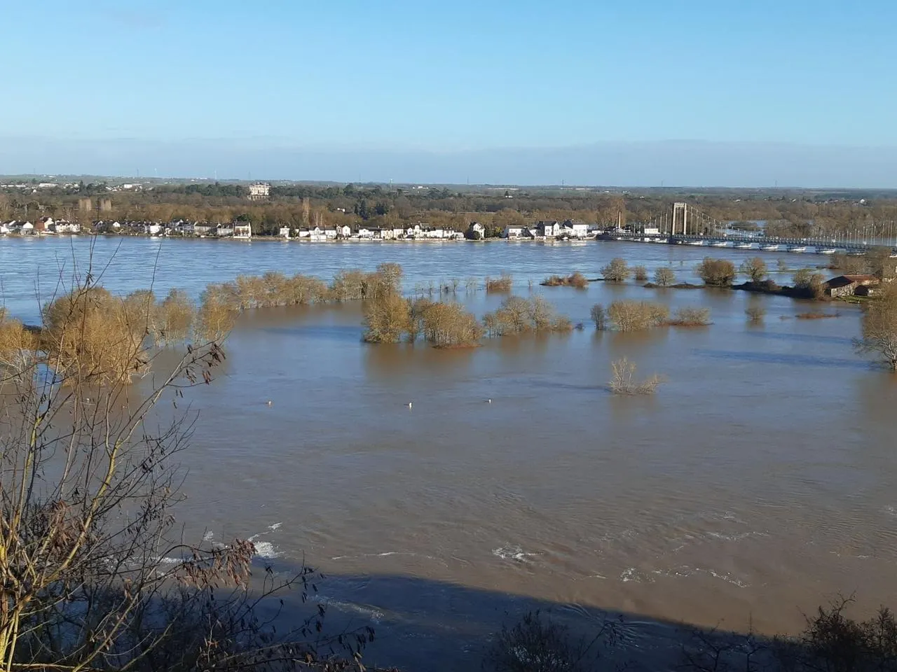 Ce mardi, la Loire a été mesurée à 5,31 mètres à la station de Montjean-sur-Loire et pourrait atteindre 5,60 m selon les prévisions. Encore loin des crues historiques de décembre 1982, quand le fleuve avait été mesuré à 6,45 mètres.