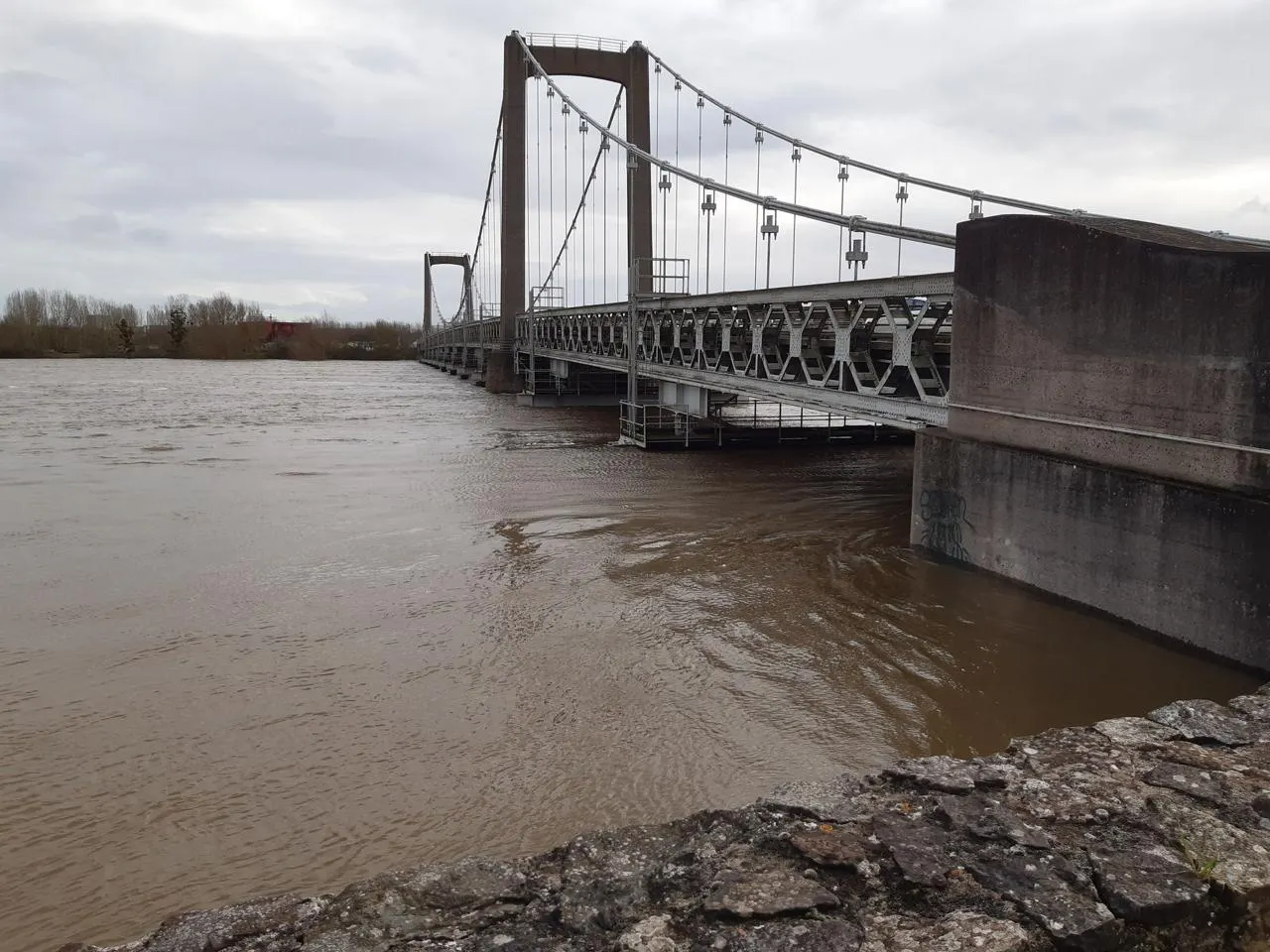 À Saint-Florent-le-Vieil, les eaux ont presque rattrapé le pont. Ouest-France