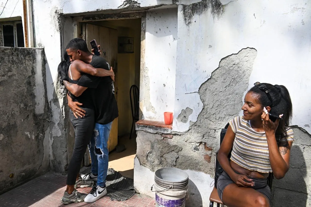 Le prisonnier politique cubain Adael Leyva Diaz embrasse ses proches après avoir été libéré, le 13 mars 2026 à la Havane. © Yamil LAGE / AFP
