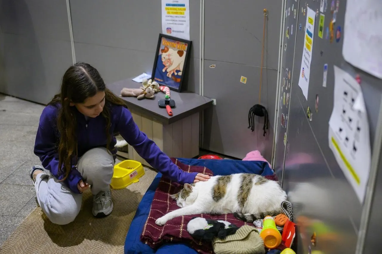 Depuis qu’un inconnu lui a volé son panier, Kanyon, un chat blanc tacheté de gris établi de longue date à l’entrée d’un centre commercial d’Istanbul, croule sous les croquettes et l’affection.