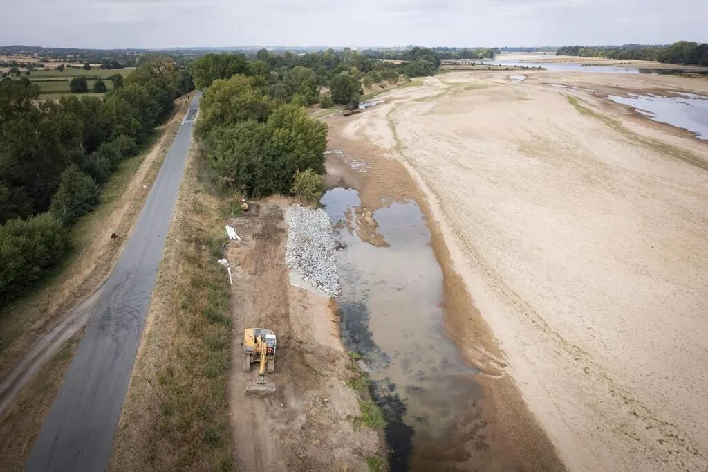 Entre Montjean-sur-Loire et Saint-Florent-le-Vieil, l’entreprise Courant conforte une portion des 13 kilomètres de digue protégeant les Mauges d’une crue de la Loire. © Conseil départemental de Maine-et-Loire