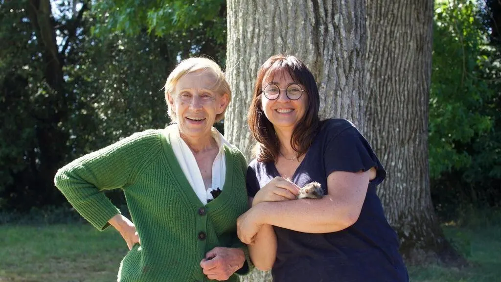 Hélène De Romans ( à gauche ) et Cécile, bénévole, posent ici dans le parc du château de Martreil à Saint Christine dans la commune de Chemillé en Anjou. Cette dernière tient dans ses bras, un choupissson, l’autre nom du bébé hérisson. Ouest-France