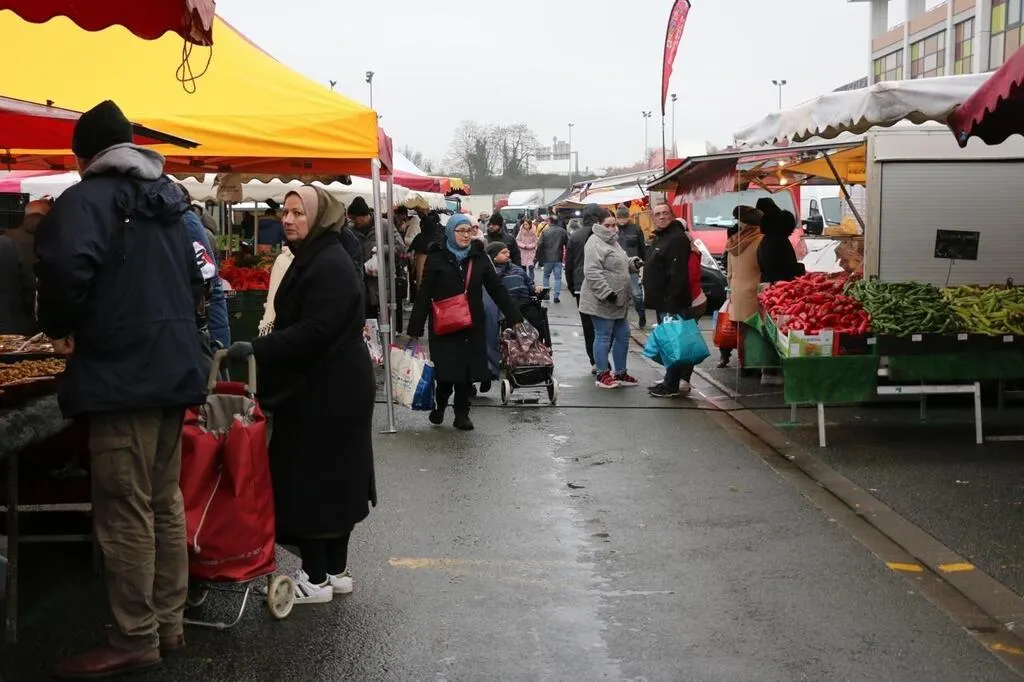 Quartier Monplaisir, à Angers, le marché du dimanche matin offre des prix très bas. Délocalisé depuis 2019, il n’est plus sur la place de l’Europe, où se concentre la pauvreté. © Ouest-France
