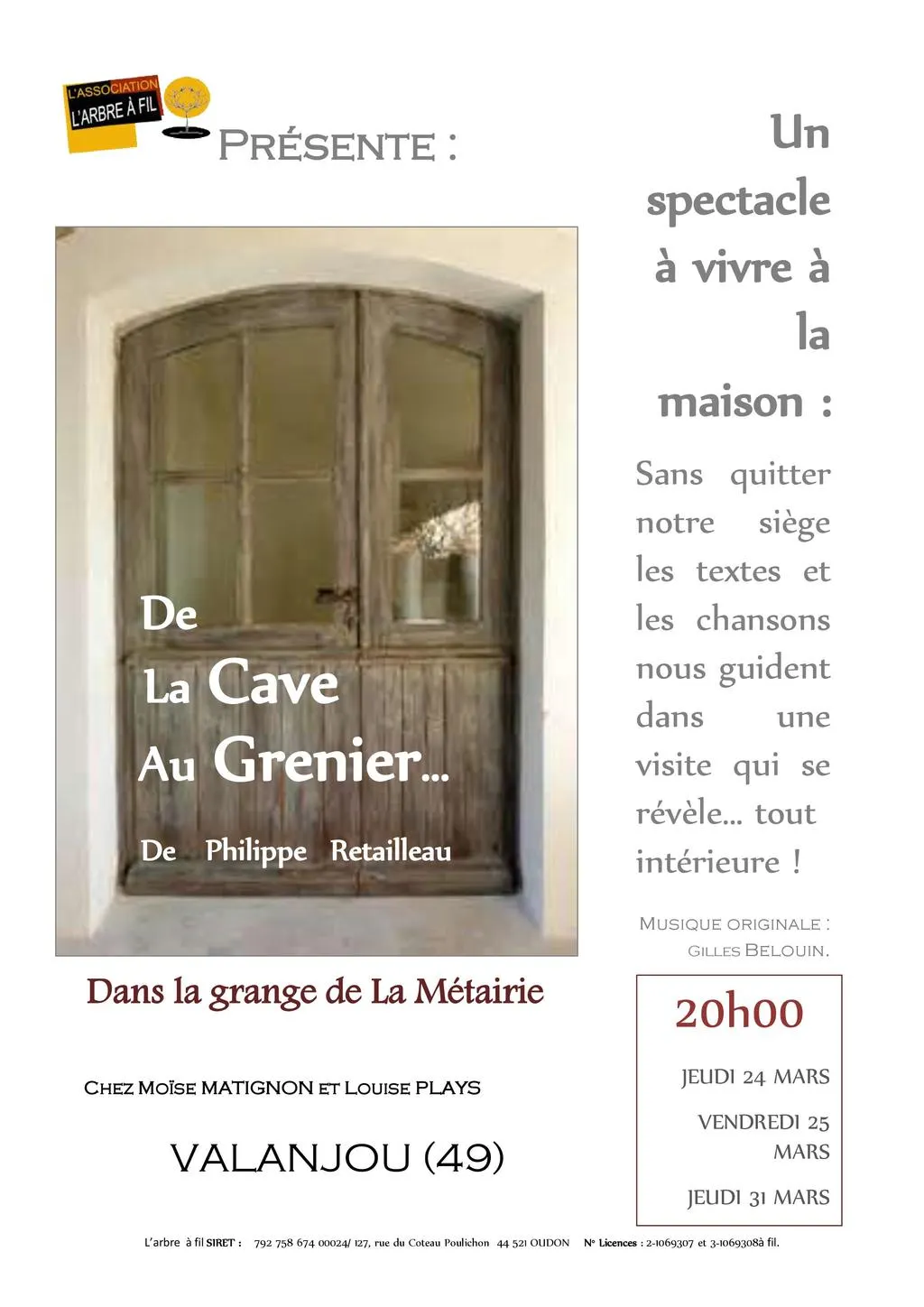 "De la cave au grenier" de Philippe Retailleau est un recueil sur le thème de la maison. Spectacle complet de théâtre et de chanson, nuancé de poésie et d'humour.