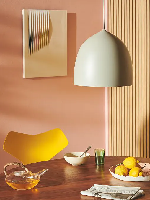 À la croisée du rouge et du bleu, le violet fait ses gammes décoratives : rose teinté de mauve, violet royal, gris lavande, «purple» cosmique… Un mur ou un fauteuil violet électrique entouré de teintes claires suffit à créer le point de départ d’une ambiance ultra-contemporaine. D’autres couleurs, tout aussi vives, ont vocation à apporter un vent de fraîcheur créatif : rouge intense, orange brique, bleu pur, rose pêche, jaune soutenu. Avec cet équilibre acidulé à la fois impactant et esthétique souffle comme un air de pop culture hérité du design Memphis des années 80.
