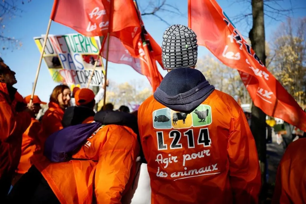 Des membres du groupe de défense des droits des animaux L214 manifestent à Paris en 2022. Photo d’illustration. © SARAH MEYSSONNIER/REUTERS