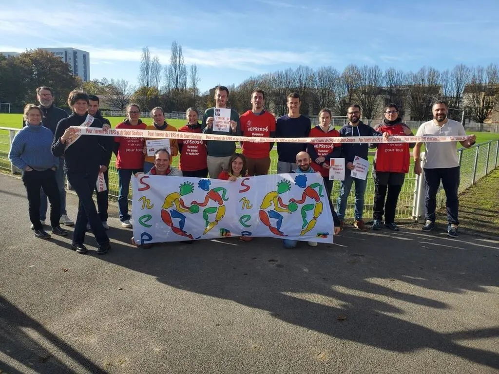 Angers, vendredi 22 novembre 2024. Les professeurs de sport s’étaient déjà mobilisés lors d’un stage de pratique de rugby du SNEP-FSU, sur le complexe sportif du collège François-Rabelais. © SNEP-FSU 49
