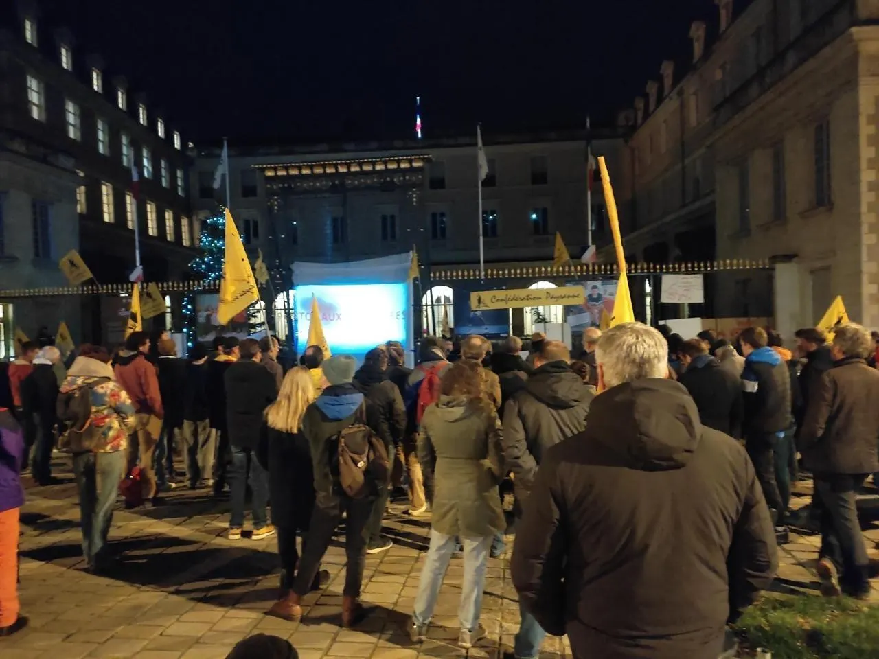 Les agriculteurs se sont mobilisés ce lundi 8 décembre en début de soirée devant la préfecture du Maine-et-Loire. © Photo Confédération paysanne