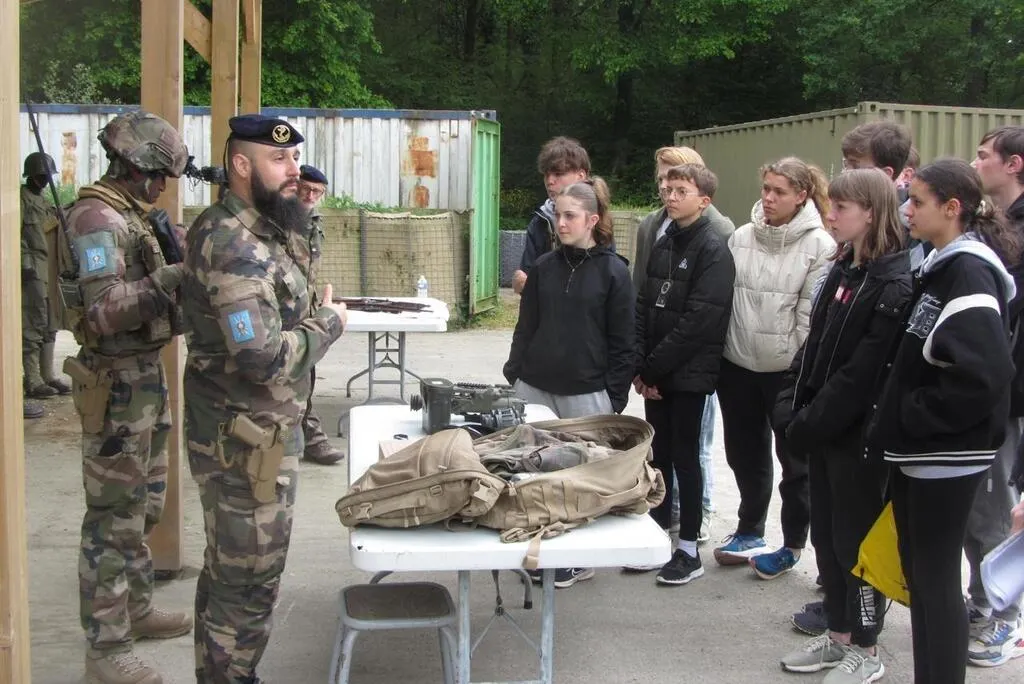 Un peu plus loin, casque sur la tête et pistolet-mitrailleur à la main, un soldat a renseigné les collégiens sur les armes et présenté en détail la musette du soldat qui renferme conserves et sachets, assurant une autonomie alimentaire de 24 heures. Tout cela pèse lourd, alors « les soldats sont astreints à un entraînement physique de haut niveau pour assumer leur rôle », a expliqué le soldat.