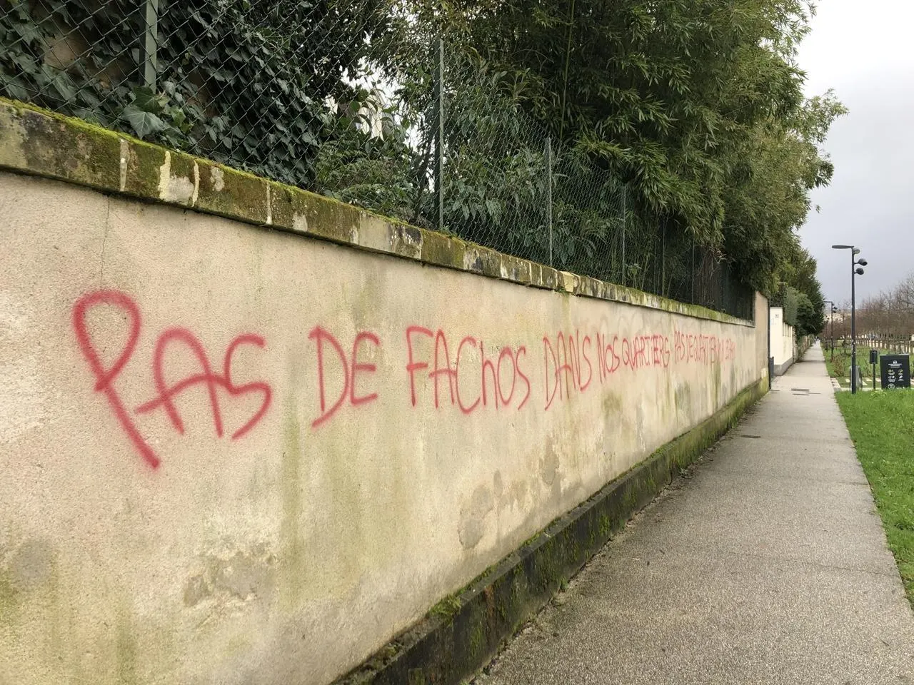 Noir, vert, rouge : une trentaine d’inscriptions antifascistes, certaines injurieuses ou menaçantes, ont été inscrites sur des murs de l’allée Jeanne-d’Arc à Angers, dans la nuit du jeudi 5 au vendredi 6 février 2026. Cela à quelques heures d’un rassemblement identitaire organisé à proximité. Une enquête a été ouverte pour dégradations.
