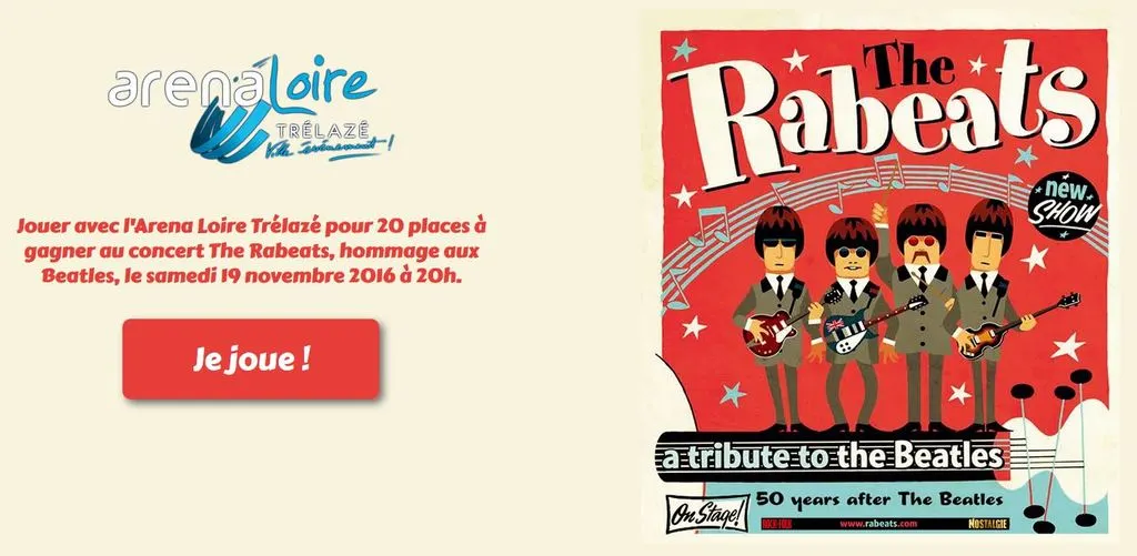 A la fin du jeu, un tirage au sort fera gagner 20 places de concerts pour le concert The Rabeats à Arena Loire Trélazé.