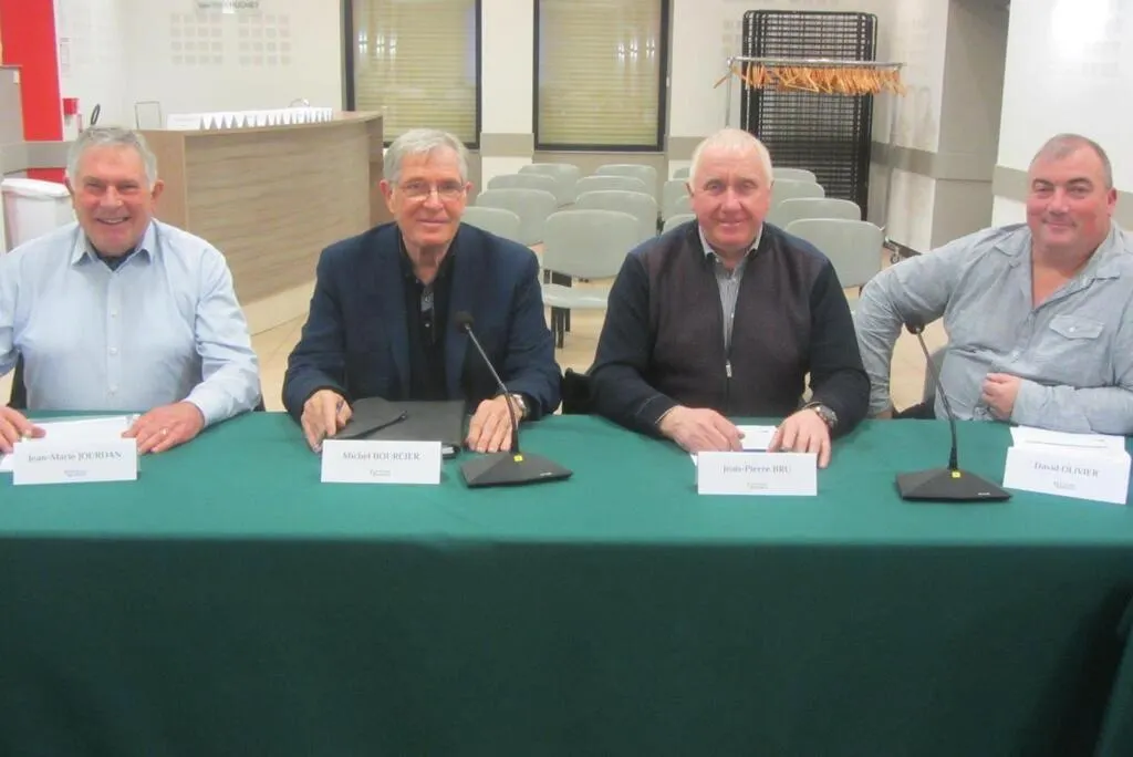 Les maires délégués, Jean-Marie Jourdan, Jean-Pierre Bru et David Olivier, et Michel Bourcier, le maire de Val-d'Erdre-Auxence, ont exposé les projets à venir à Villemoisan, Le Louroux-Béconnais et La Cornuaille. © Ouest-France
