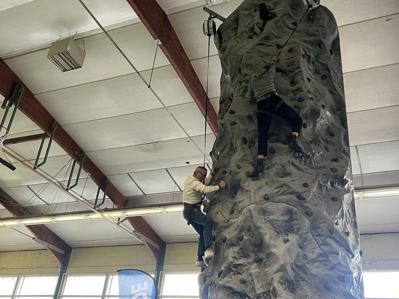 Jackie Goulet et Laetitia Saint-Paul se sont essayés à l’escalade, lors du premier Raid Prox organisé à Saumur. © CO