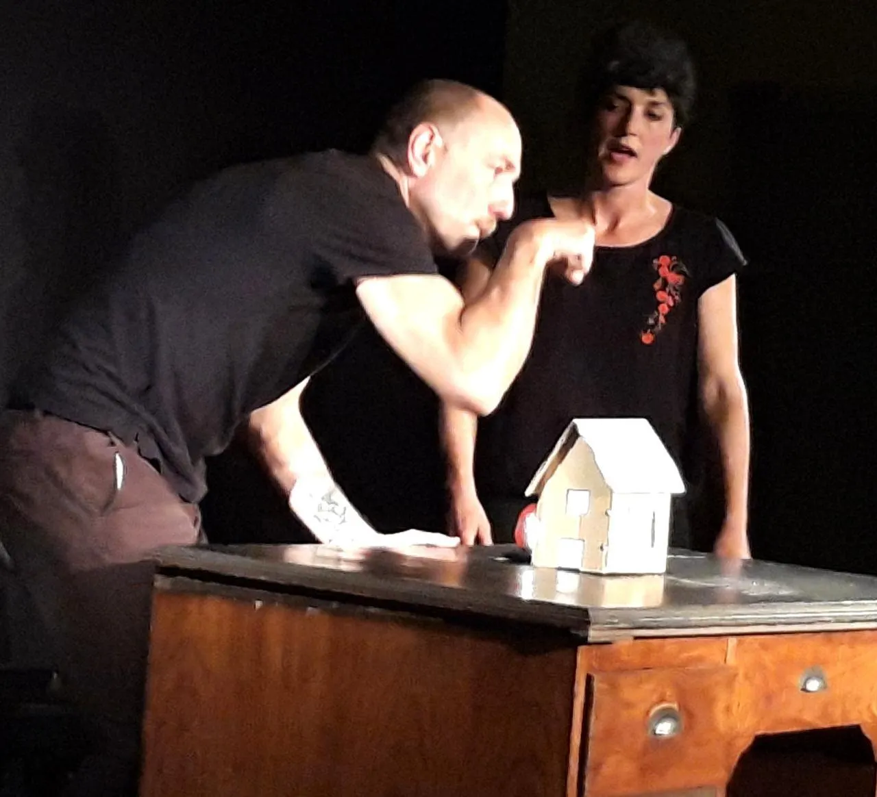 « Viva ! », le spectacle proposé par la Loquace compagnie, a réuni le public à la salle des fêtes de Concourson-sur-Layon mardi 24 mars. Malgré son titre joyeux, c’est une histoire tragique qui lui a été racontée : celle d’un féminicide, sur fond de dictature. Daniel Olmos, avec sa compagne Lisa Peyron, a fait de son histoire familiale un spectacle qu’il a souhaité universel, en choisissant le théâtre d’objets. Celui-ci offre la distanciation nécessaire pour pouvoir comprendre ce qui s’est joué dans la vie de son grand-père, assassin presque « malgré » lui. Car si la violence s’est exercée sur son épouse, elle n’est pas advenue par hasard. C’est un système qui a exercé d’abord sa violence sur une population au point de lui faire perdre son humanité. Ainsi des victimes deviennent-elles des bourreaux, pour tenter d’échapper à leur destin. Avec un bureau, des crayons, des dossiers, des papiers, des copeaux et… un grand tapis, se raconte l’histoire de José et Maria. C’était en Espagne, mais c’est partout dans le monde. L’attention du spectateur est sans cesse mise à l’épreuve, tant visuellement qu’oralement - l’espagnol s’invite dans le récit - pour interpréter cette douloureuse page d’histoire. Viva ! a permis à Daniel de lever un tabou familial et ouvre une réflexion sur l’origine de la violence.