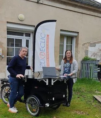 « Nous avons acquis un triporteur, que nous devons finir d’aménager. Il sera piloté dans un premier temps par les salariés, qui seront formés à son maniement. Nous proposerons des animations diverses : casque de réalité virtuelle, imprimante 3D, découpe vinyle, initiations à l’utilisation des différents outils numériques…