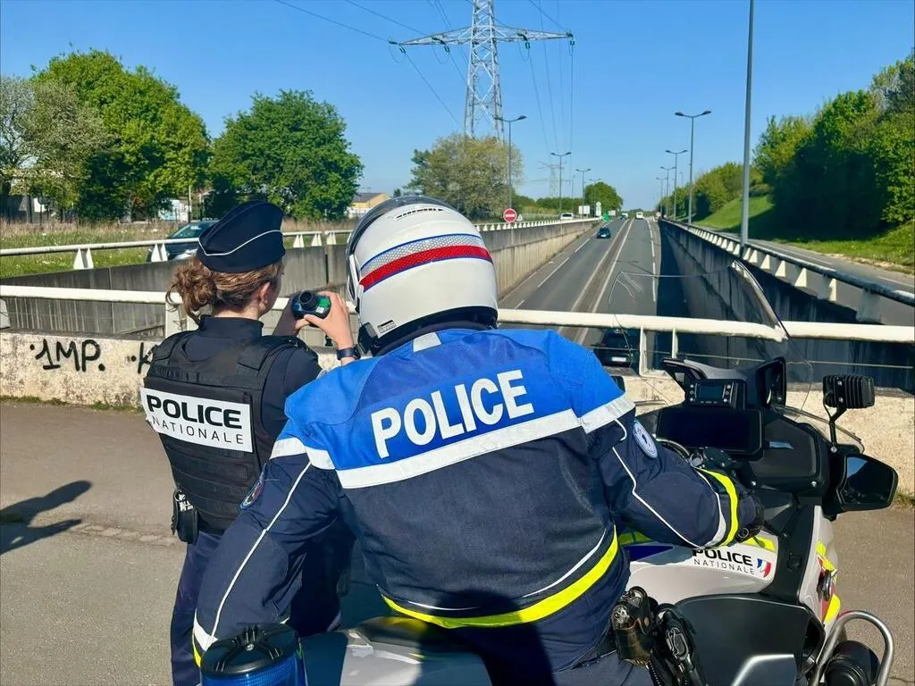 Les motards de la police nationale menaient des opérations de contrôle de vitesse. © Ouest-France