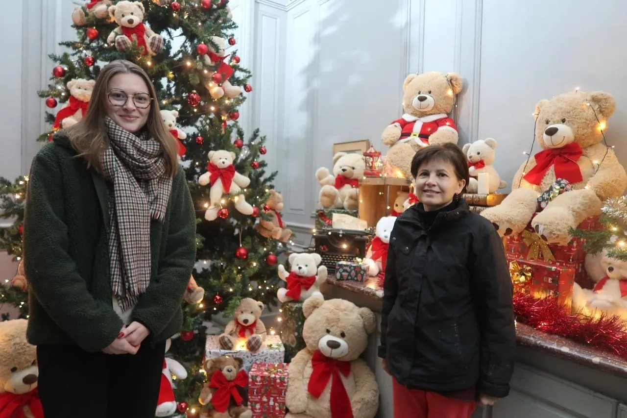 Mazé, le 21 novembre 2025. Louise Chouteau, médiatrice culturelle, ici aux côtés d’Emmanuelle Goulu, bénévole, dans l’un des décors préparés pour le marché de Noël au château de Montgeoffroy. © CO - Agathe LE NUEFF