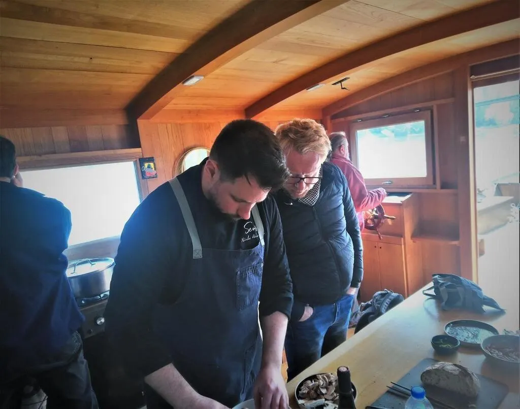 Le journaliste Jérôme Pitorin et le chef cuisinier Nicolas Adamopulos au moment d’embarquer sur une toue à la découverte de la Loire. © Ouest-France