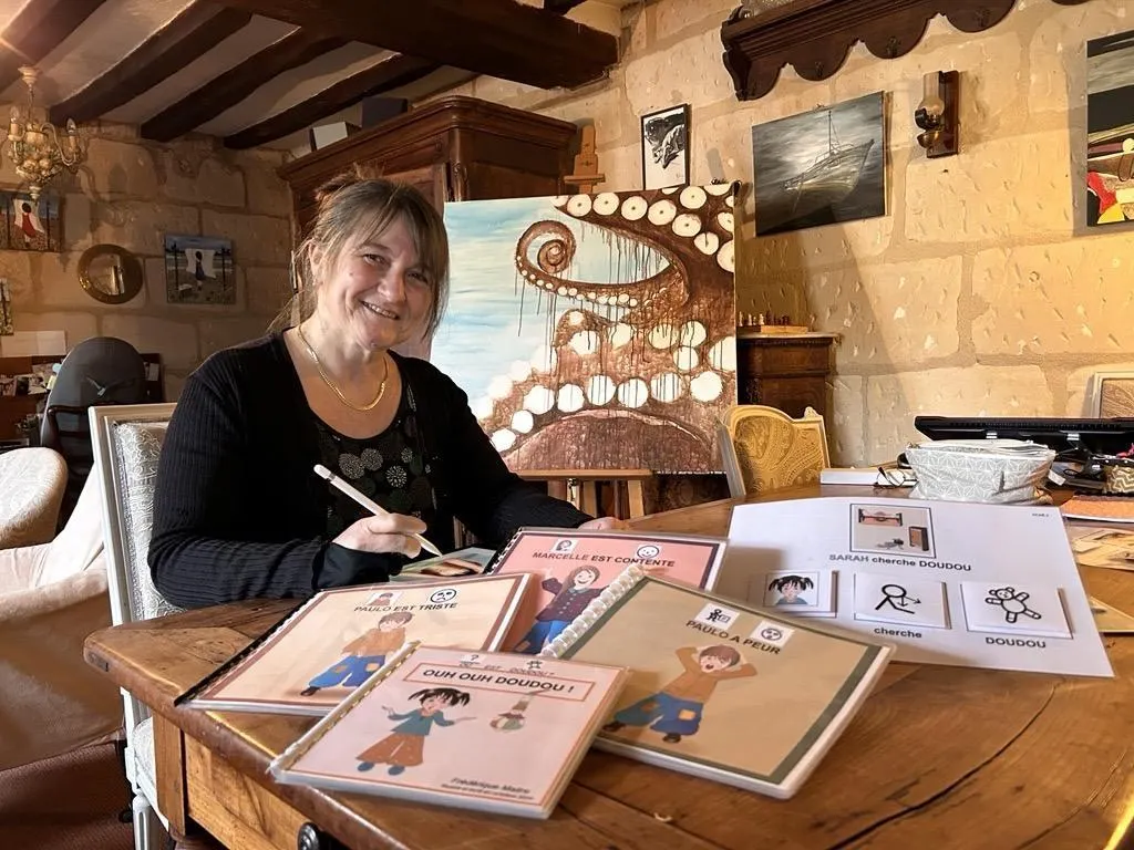 Brion (Les Bois-d’Anjou), le 11 février 2026. Après trente ans d’une carrière d’éducatrice spécialisée auprès d’enfants déficients, Frédérique Maitre se lance dans la réalisation d’ouvrages destinés à ce public. © CO - Christophe Ricci