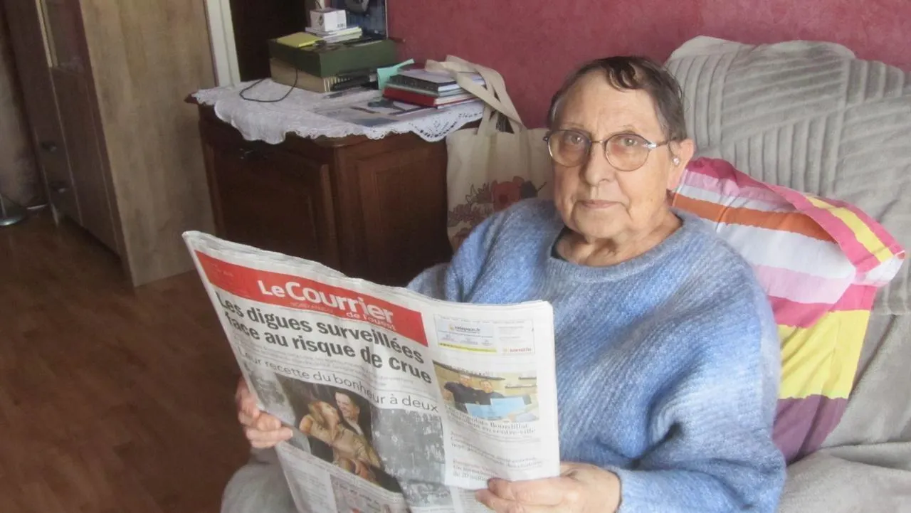Dans son nouvel appartement, les pieds bien au sec, Jeannine Macé, l’ancienne habitante, âgée de 82 ans, qui a résidé 60 ans dans le hameau de Saint-Aubin-du-Pavoil, proche de Segré-en-Anjou Bleu, raconte ses souvenirs d’inondations. © CO