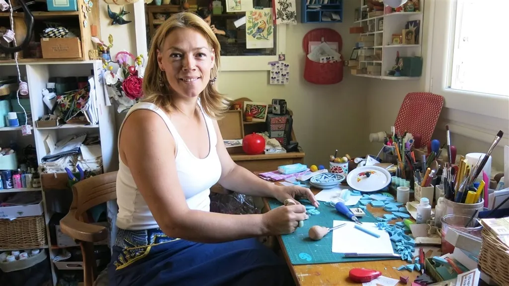 Bien loin du monde créatif, Fabienne Muller a commencé par des études scientifiques : « j’ai suivi une formation en biologie végétale. Il y a 25 ans, il était plus difficile d’aller vers des activités artistiques ». Aujourd’hui ingénieur dans l’environnement, la quadragénaire a réussi à concilier son métier et sa passion. « J’ai créé un blog et je me suis imposé la contrainte de montrer quelque chose de créatif. J’ai découvert la gravure sur gomme par hasard, c’est une activité très populaire au Japon. Ça a révolutionné ma vision des choses et j’ai commencé comme ça », raconte la créatrice. Cette mère de famille recomposée qui partage sa vie avec l’illustrateur Fred Sochard a installé un petit atelier à son image dans le sous-sol de sa maison à Avrillé !