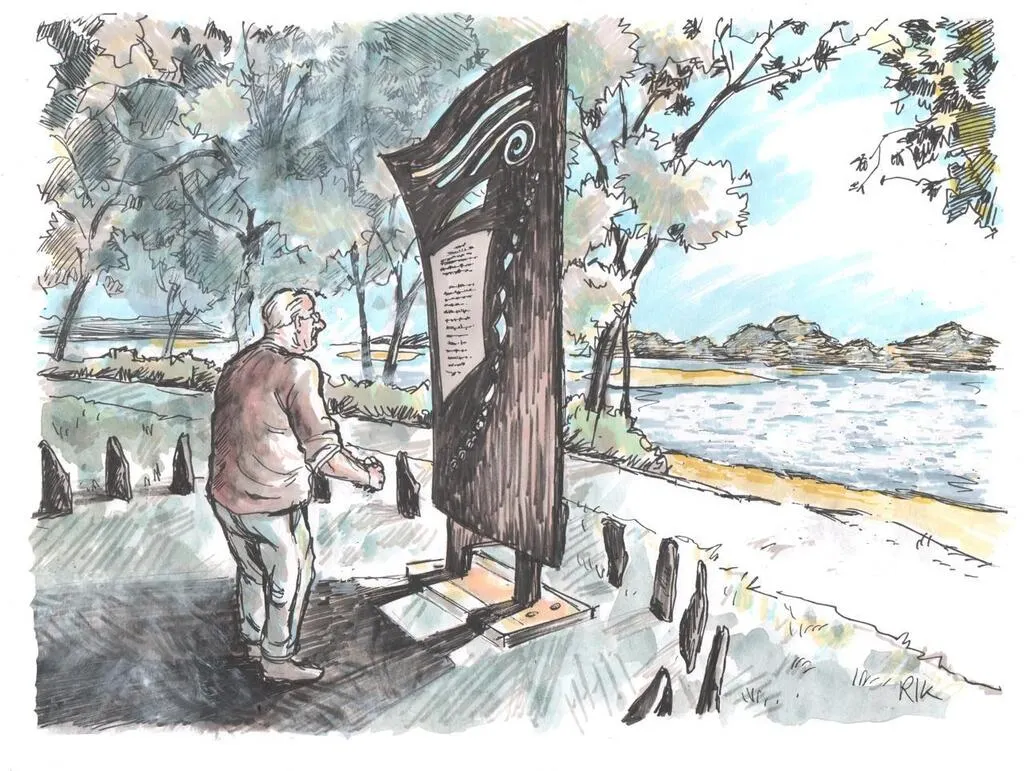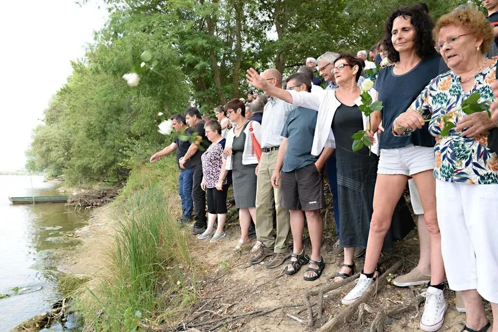 Michel Delaunay s’est rendu pour la première fois il y a quelques jours, discrètement, à l’endroit où 19 enfants de 10 à 13 ans, dont il avait la charge, se sont noyés. Il s’est recueilli avec émotion devant la stèle en hommage aux victimes qui sera inaugurée ce vendredi, sans lui. © Dessin Rik