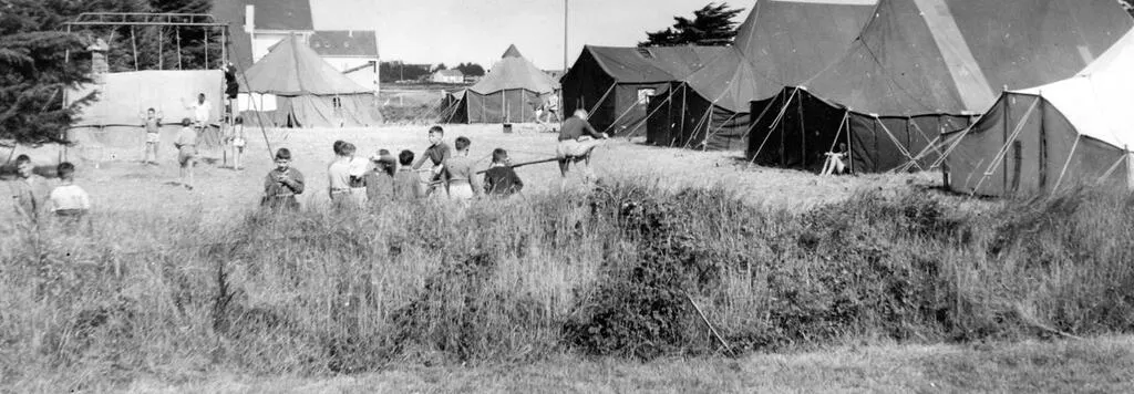 Les grandes tentes érigées sur la propriété Ker Madeleine, ici en 1956, pour les jeunes colons du Haut-Anjou. Collection privée