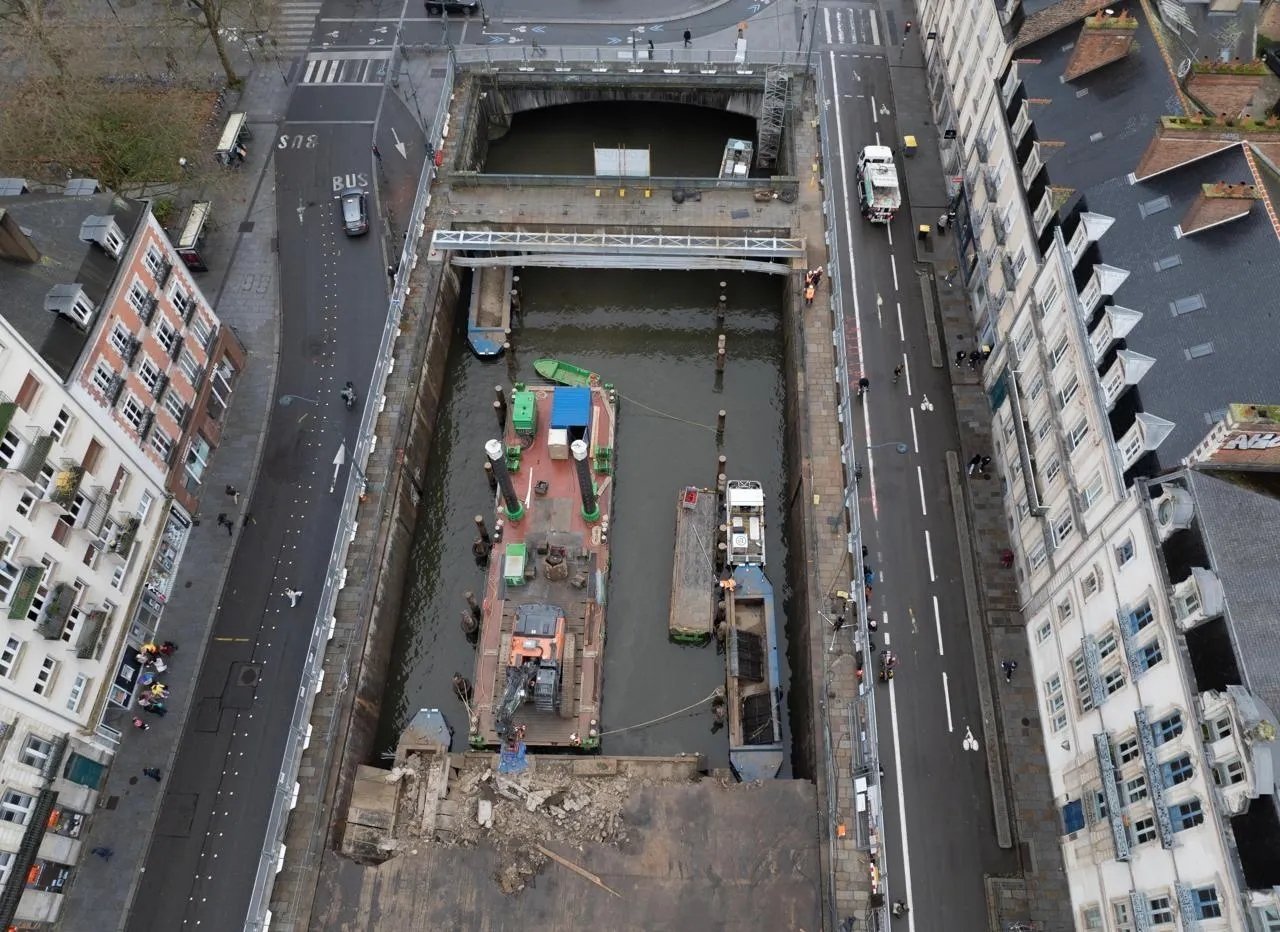 Le spectacle mérite bien de prendre de la hauteur. À Rennes (Ille-et-Vilaine), les travaux de déconstruction du parking Vilaine et de la lourde dalle de béton cachant le fleuve coulant en dessous, accélèrent.