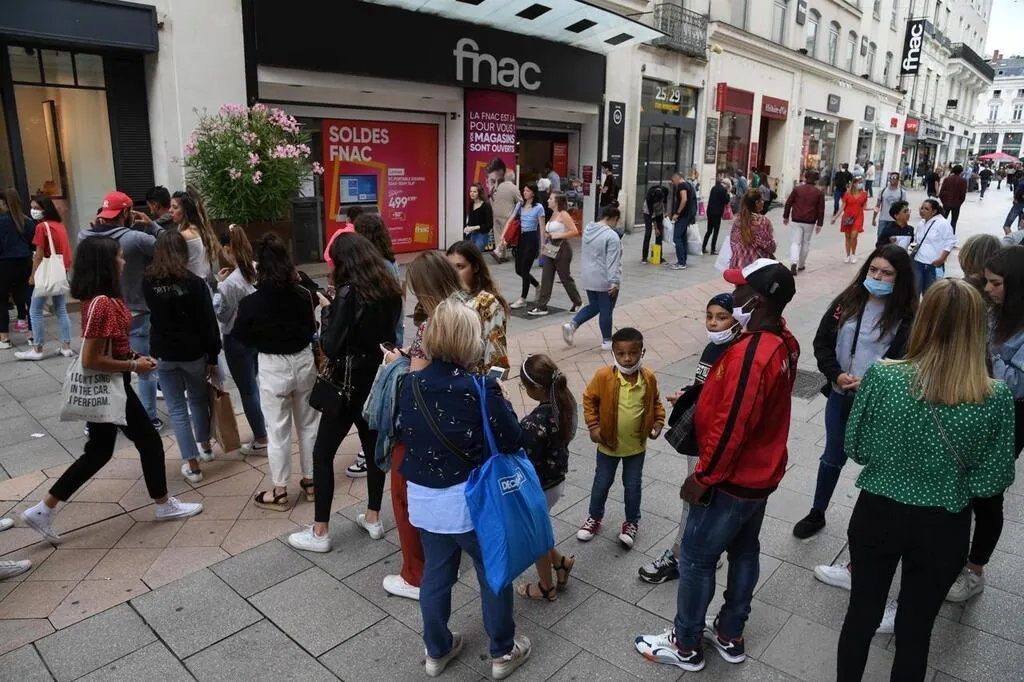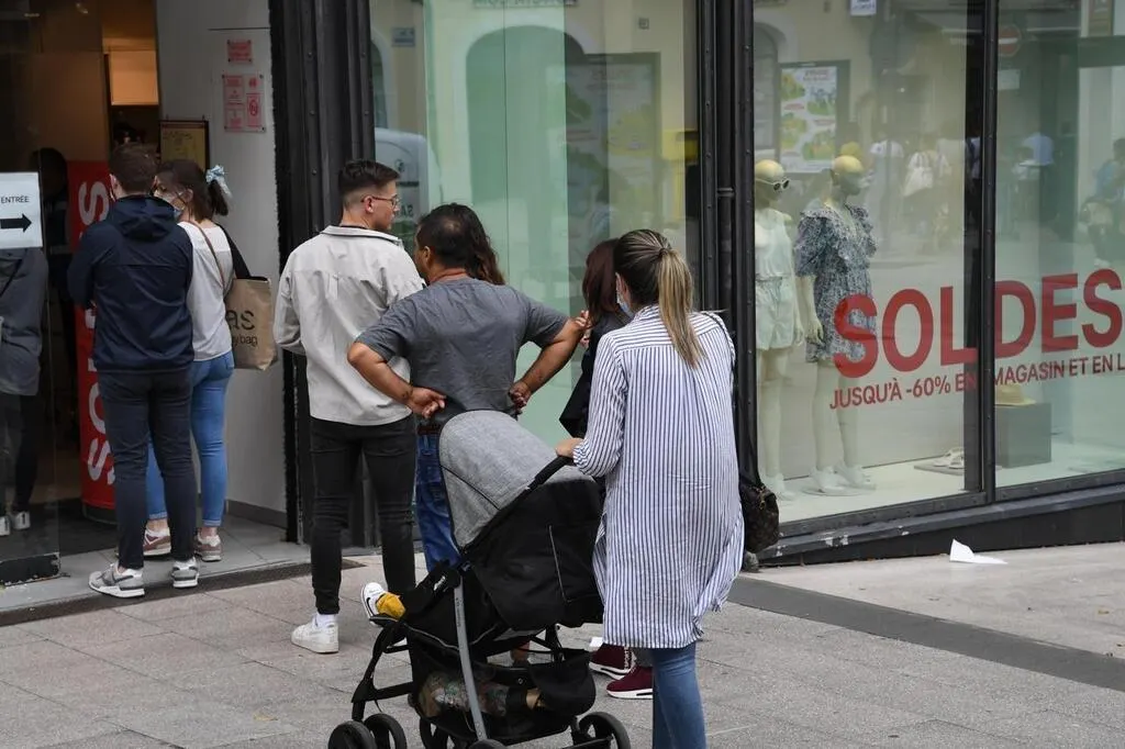 De nombreux clients portaient un masque pour faire les magasins, à l’occasion du premier jour des soldes. © CO – LAURENT COMBET