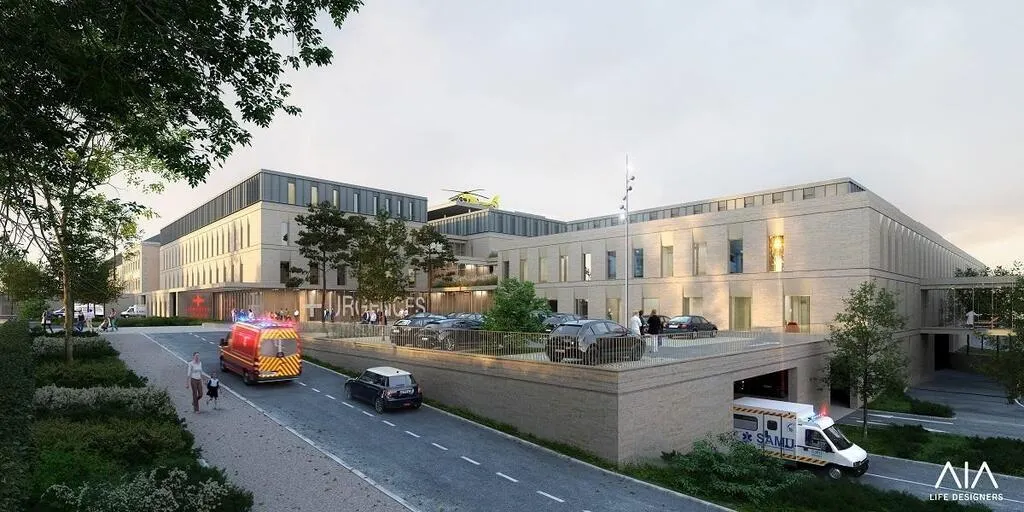 Pour les urgences vitales, les ambulances accéderont au nouveau bâtiment par l’arrière, par le boulevard Mirault et la rue Olivier. © © AIA Life Designers architectes – image Airstudio 2023